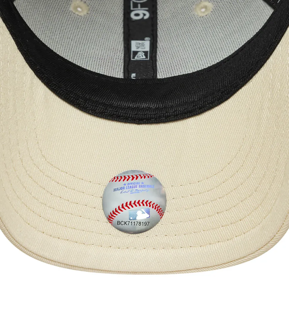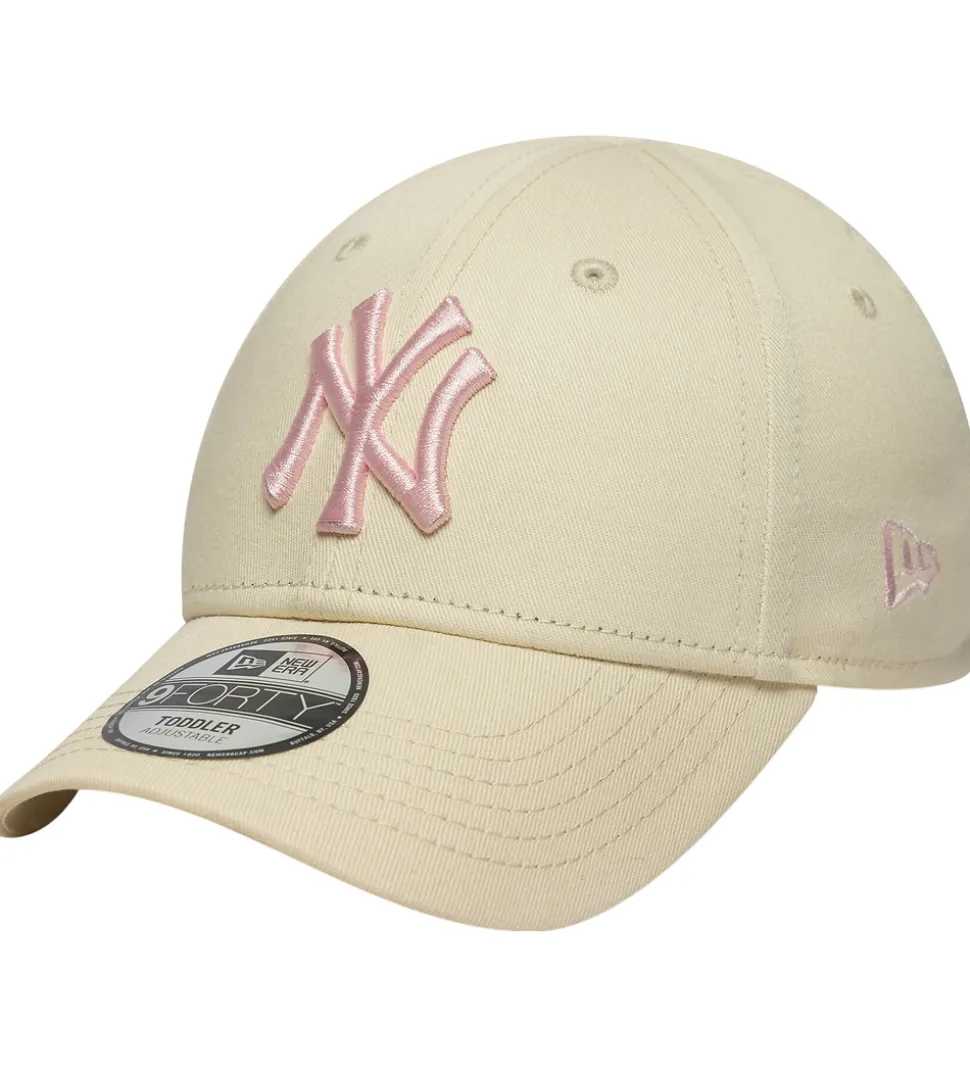 Skøn New Era kasket i beige med et rosa NY-logo broderet foran. Kasketten har en buet skygge og kan justeres i nakken med en praktisk velcrolukning.