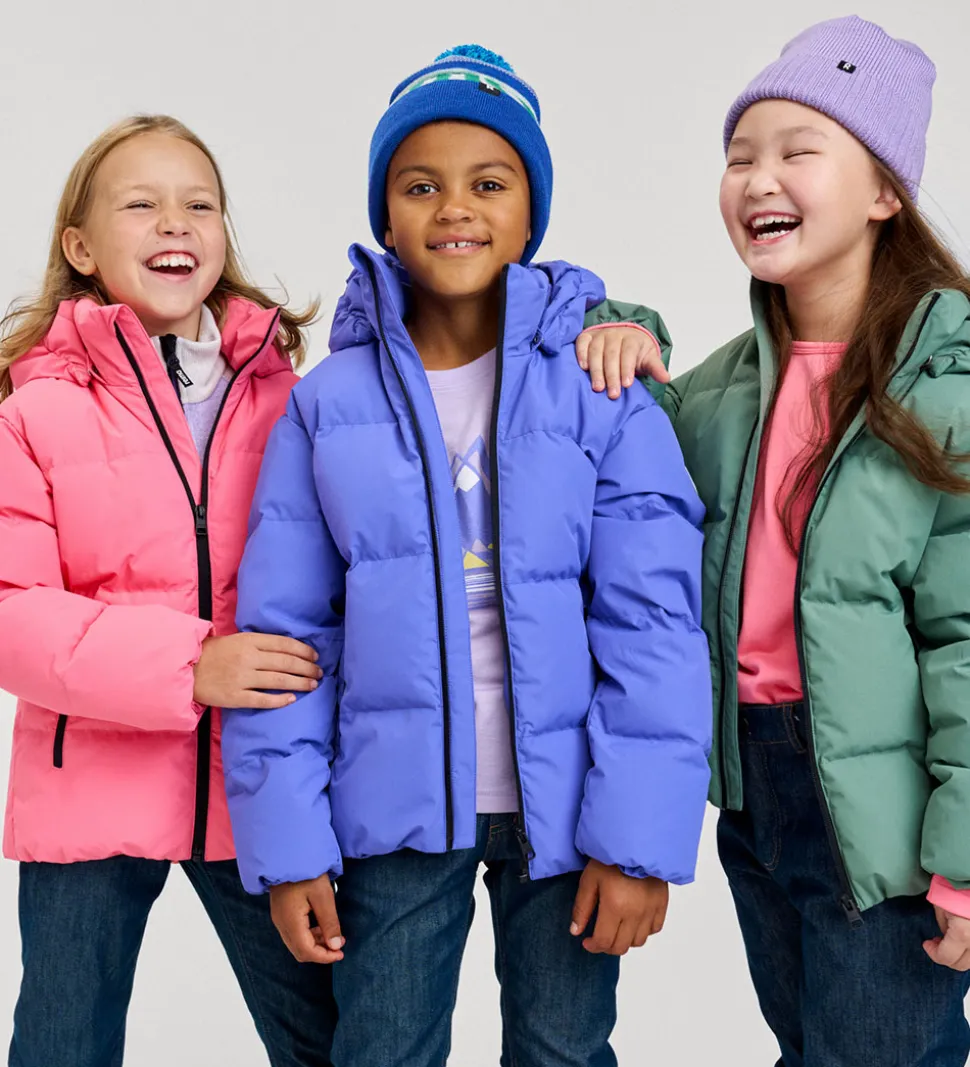 Reima dunjakken har en aftagelig hætte, som fæstnes langs den høje halskrave med skjulte trykknapper. Ærmerne har indvendige elastikanter.