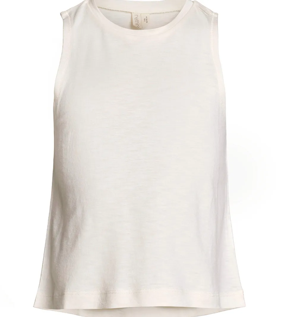 Rethinkit top er helt uden ærmer, og den har et flot A-snit, som giver en god vidde.