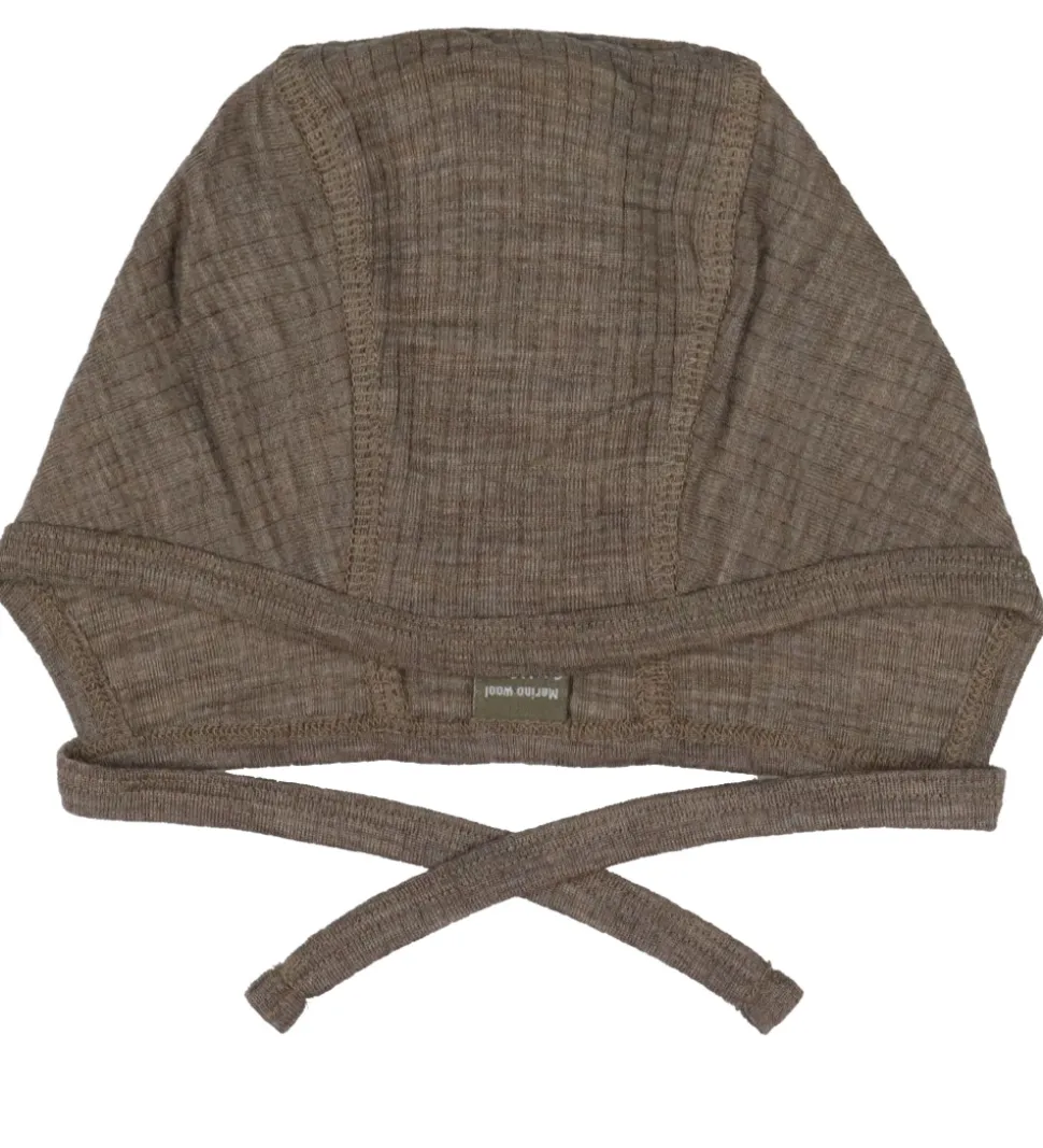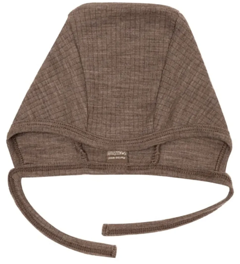 Blød Smallstuff babyhjelm i ensfarvet brun rib.