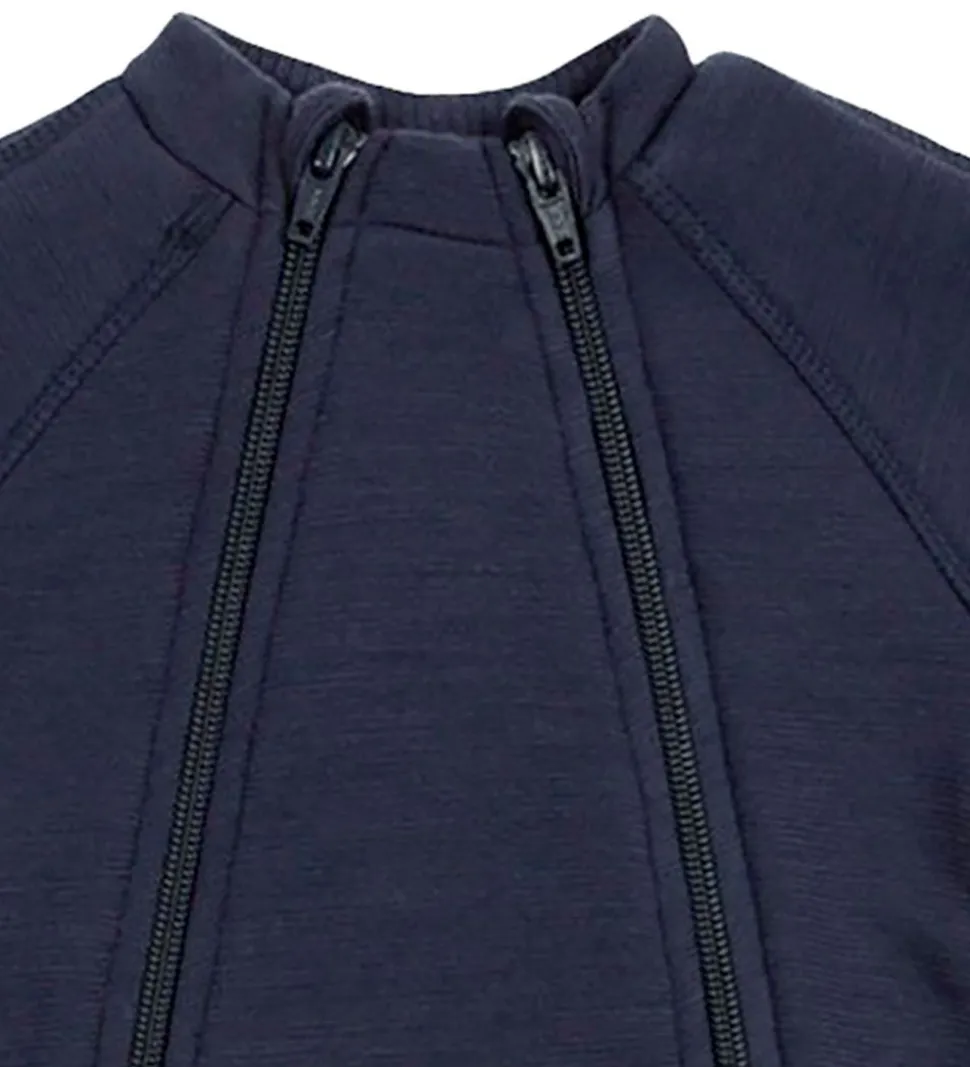Smallstuff køredragten har lange ærmer og ben, begge med praktiske ombuk så den kan få fødder og luffer. Dragten åbnes fortil med to praktiske lynlåse, strækkende fra halsen og ned til over fødderne. Indvendigt er der blødt, varmt uldfleece.