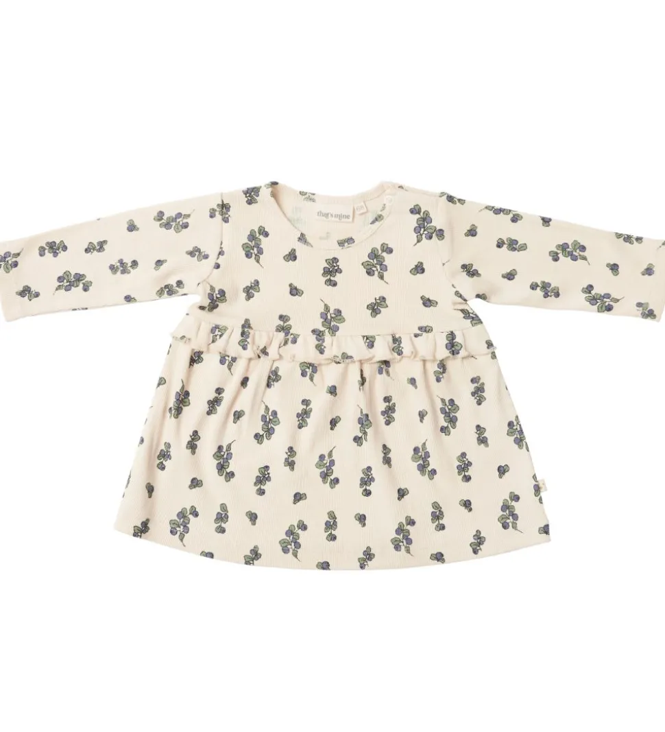 Sød That’s Mine tunika i beige rib med et alloverprint af blåbær med blade.