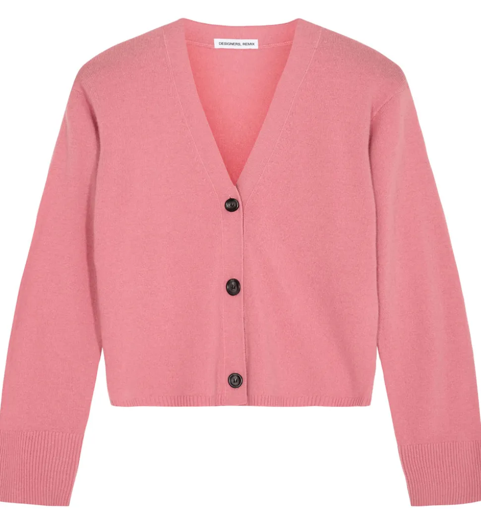 Sød Designers Remix cardigan i ensfarvet, rosa uld.