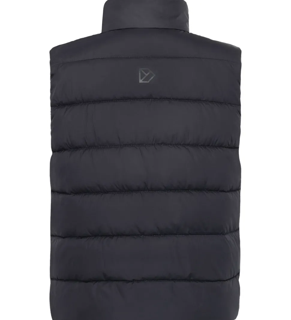 Didriksons dynevesten har en høj halskrave og lukkes fortil ved hjælp af en lynlås med lang, fleeceforet hagebeskytter. Dynevesten har to åbne, fleeceforede lommer på fronten.