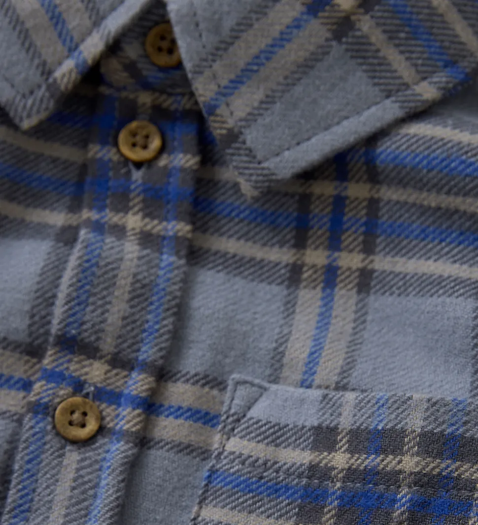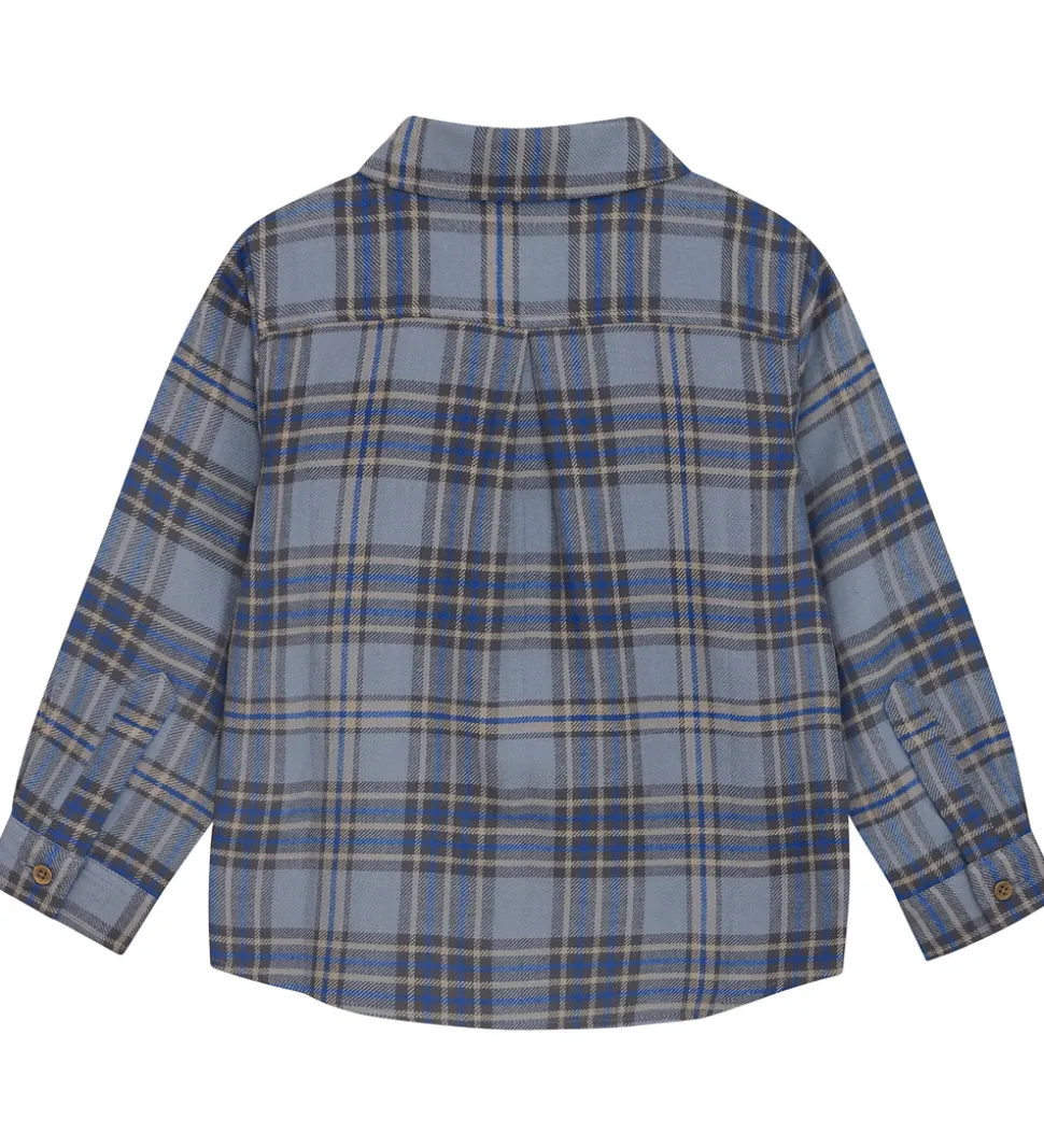 Attraktiv En Fant skjorte med et klassisk, ternet mønster i blå og grå nuancer.