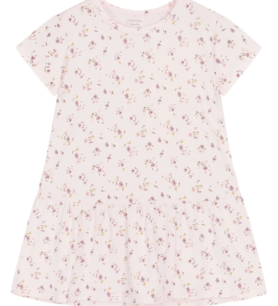 Delikat Hust and Claire natkjole med et fint blomstermønster på en blød, lyserød baggrund. Samlingen af små blomster giver et elegant design, som er tidløst og klassisk.