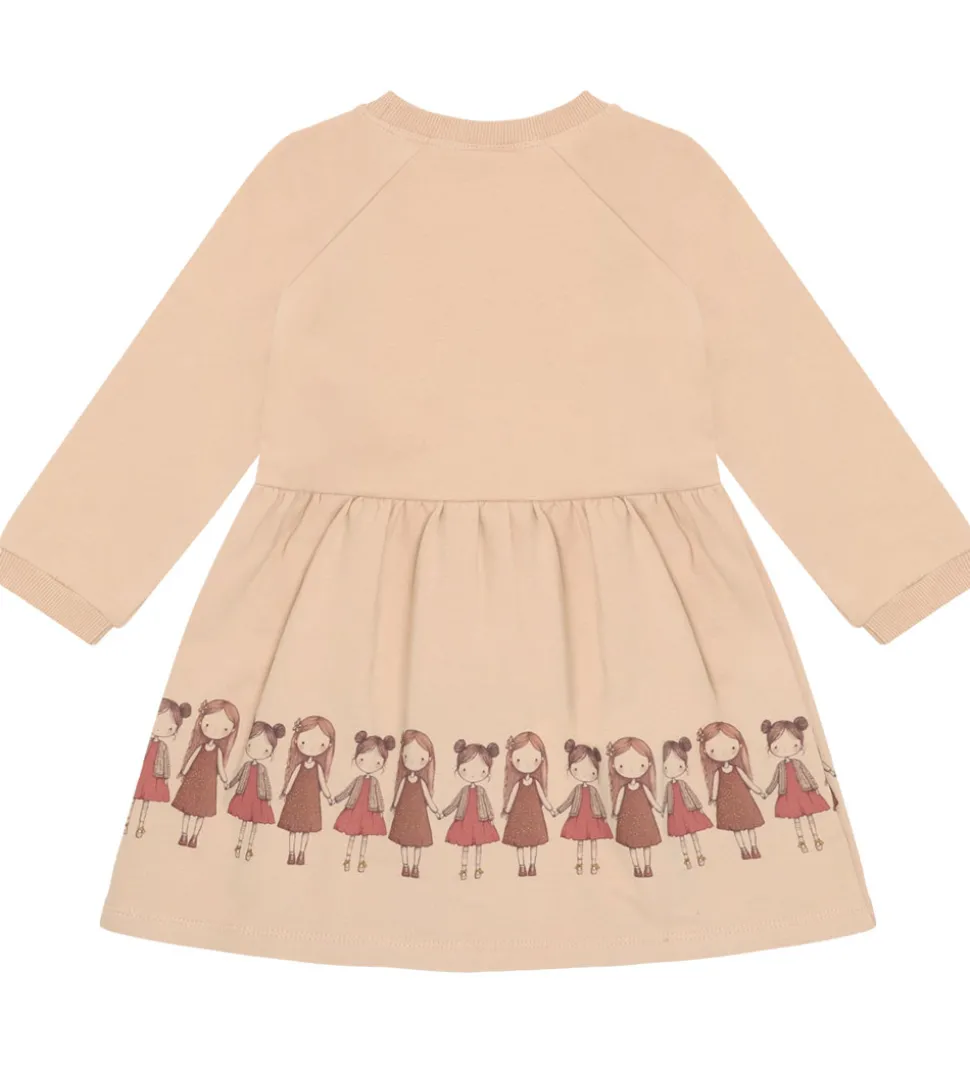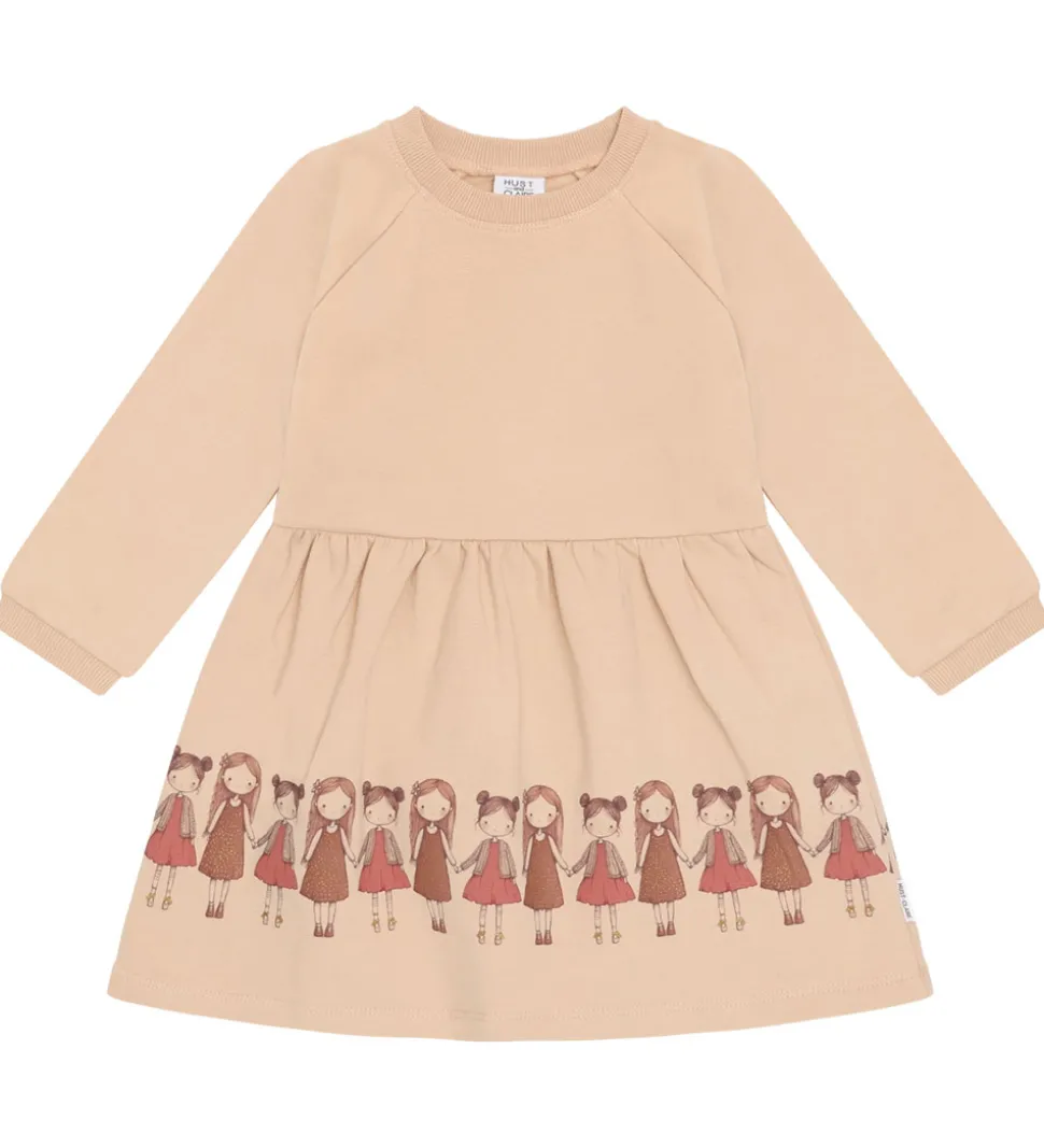 Elegant Hust and Claire kjole i rosa sweat med langt ærme og rund halsudskæring. Hust and Claire kjolen er dekoreret med et charmerende print af små piger langs kjolens nederste kant. Sweatkjolen har et enkelt og tidløst design med ribkanter ved ærmer og hals. På indersiden er der blødt, børstet bomuld.