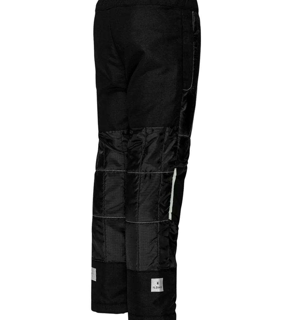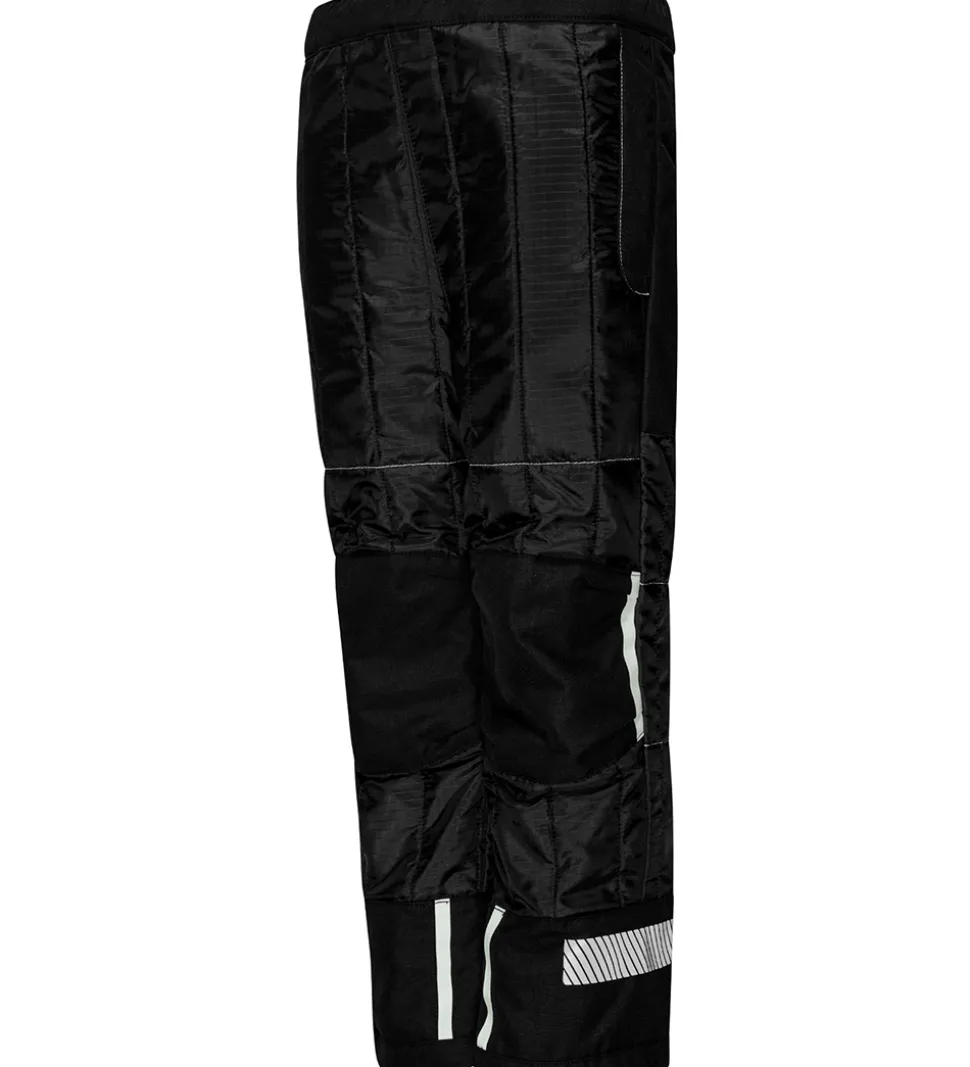 Smarte ILDHU termobukser i sort med en quiltet struktur og mange reflekser for høj synlighed i trafikken.