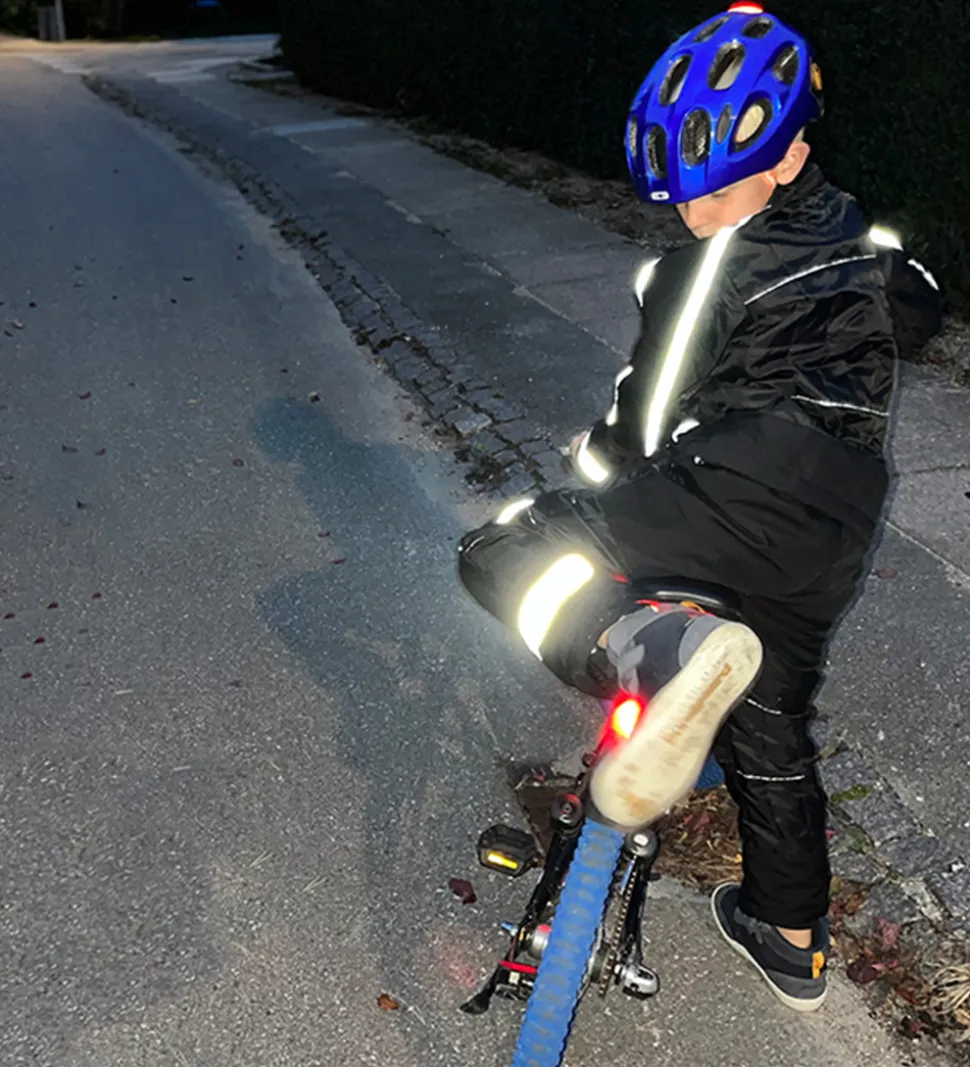 Udover normale reflekser er termobukserne udstyrede med selvlysende VizLite DT-reflekspaneler, som lyser i op til 8 timer efter at have ladet op i bare 5 minutters dagslys eller 10 minutters lampelys. Udover at være selvlysende er reflekspanelerne også reflekterende og fungerer som ekstra reflekser.
