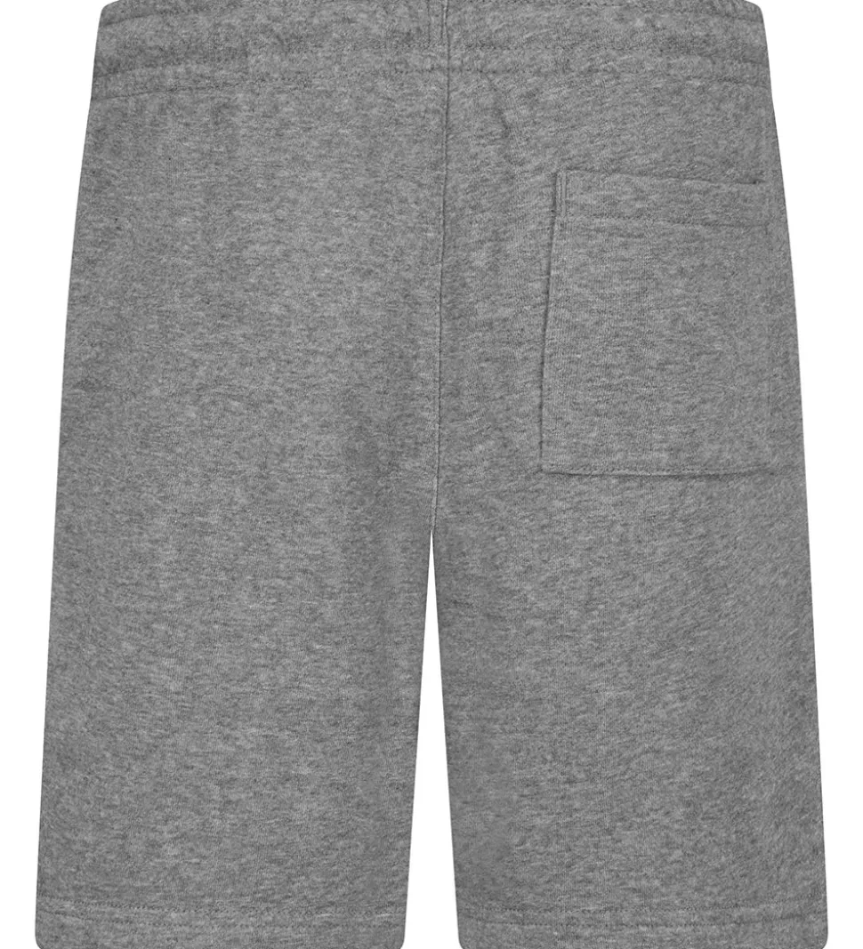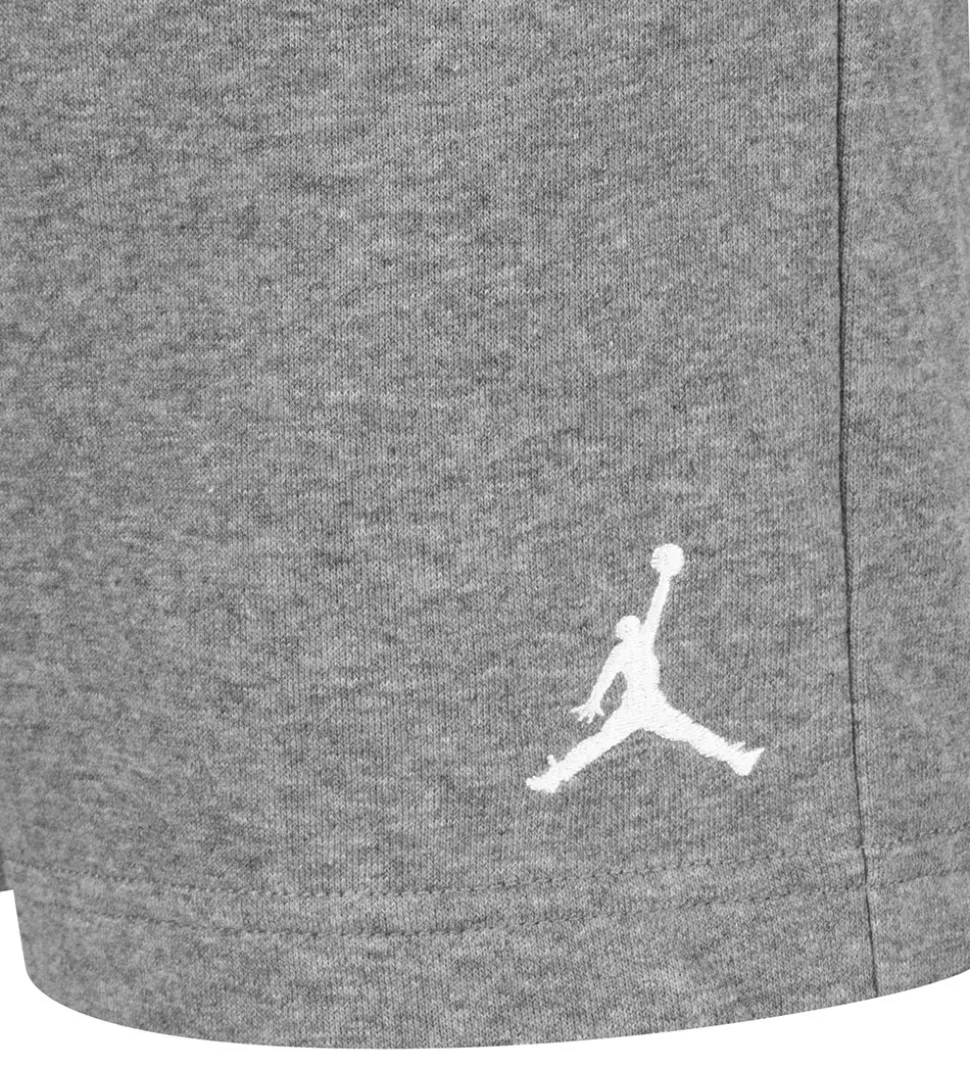 Dejlige Jordan sweatshorts i gråmeleret med et hvidt jumpman-logo broderet på venstre ben. Sweatshortsene har en elastisk taljekant med snøre, der giver en justerbar pasform samt åbne forlommer og en åben baglomme i højre side. På indersiden er der blød, børstet bomuld.