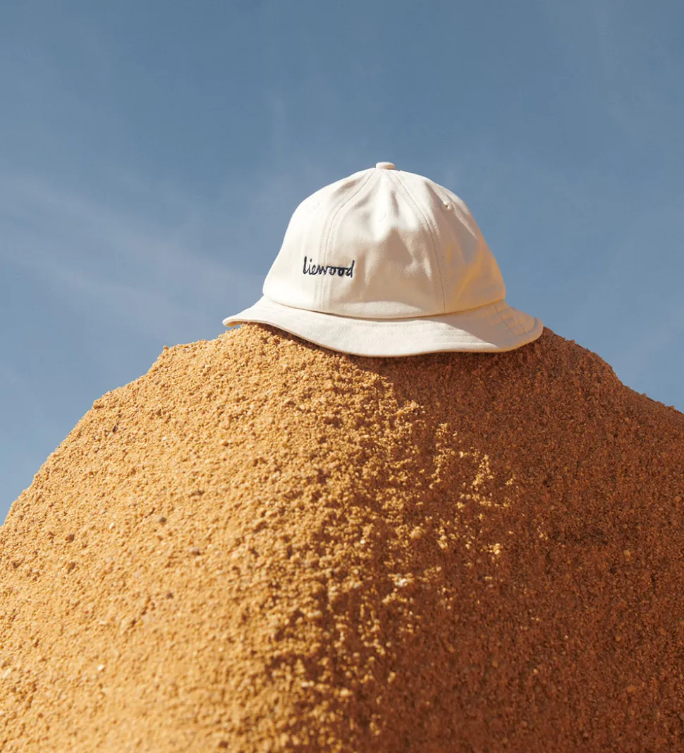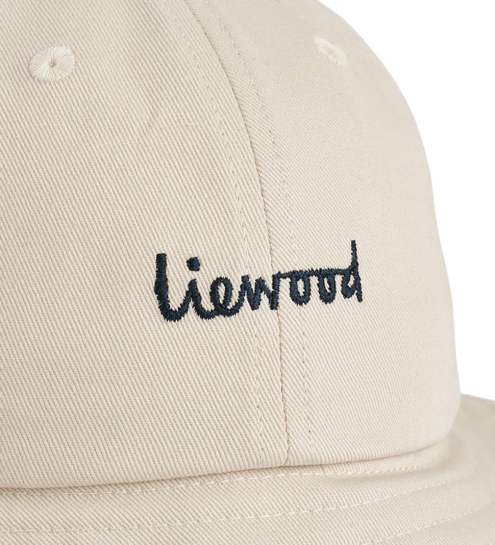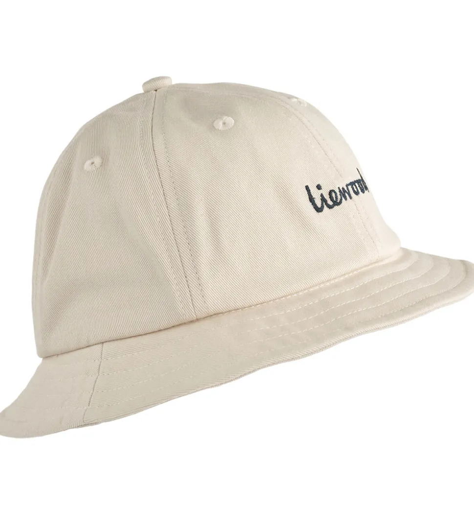 Sød Liewood bøllehat i beige med og med Liewood broderet i navy fortil.