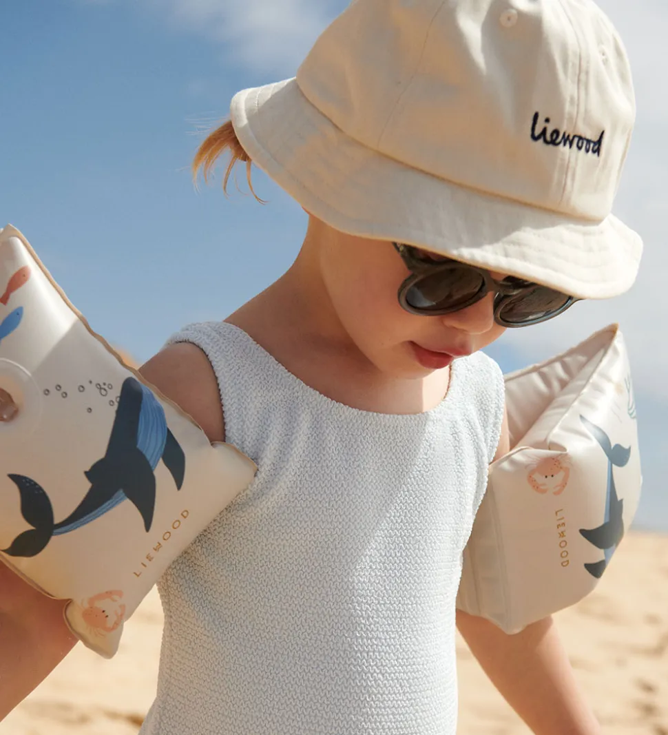 Liewood bøllehatten er flad på toppen med en bred skygge langs hele hattens kant. Bøllehatten er i en fastvævet kvalitet og har ventilationshuller øverst.