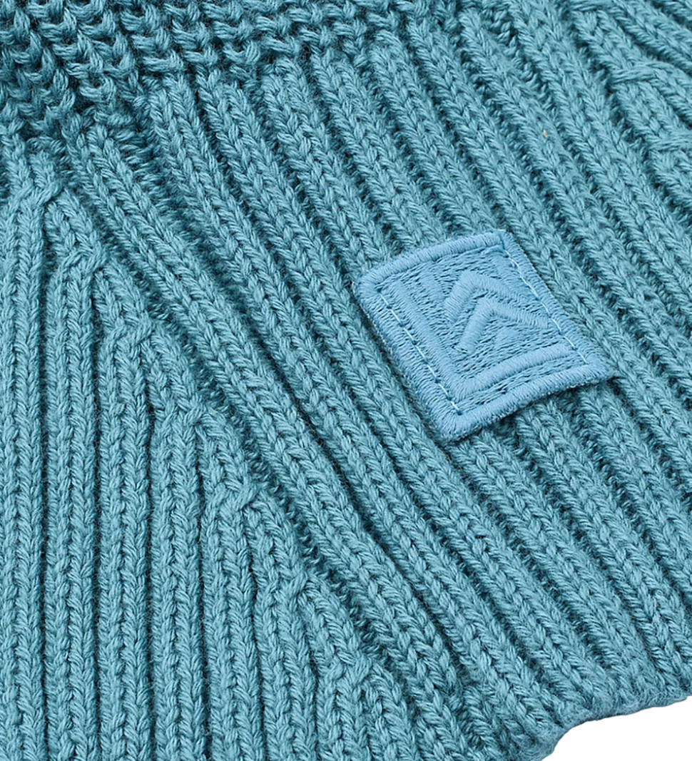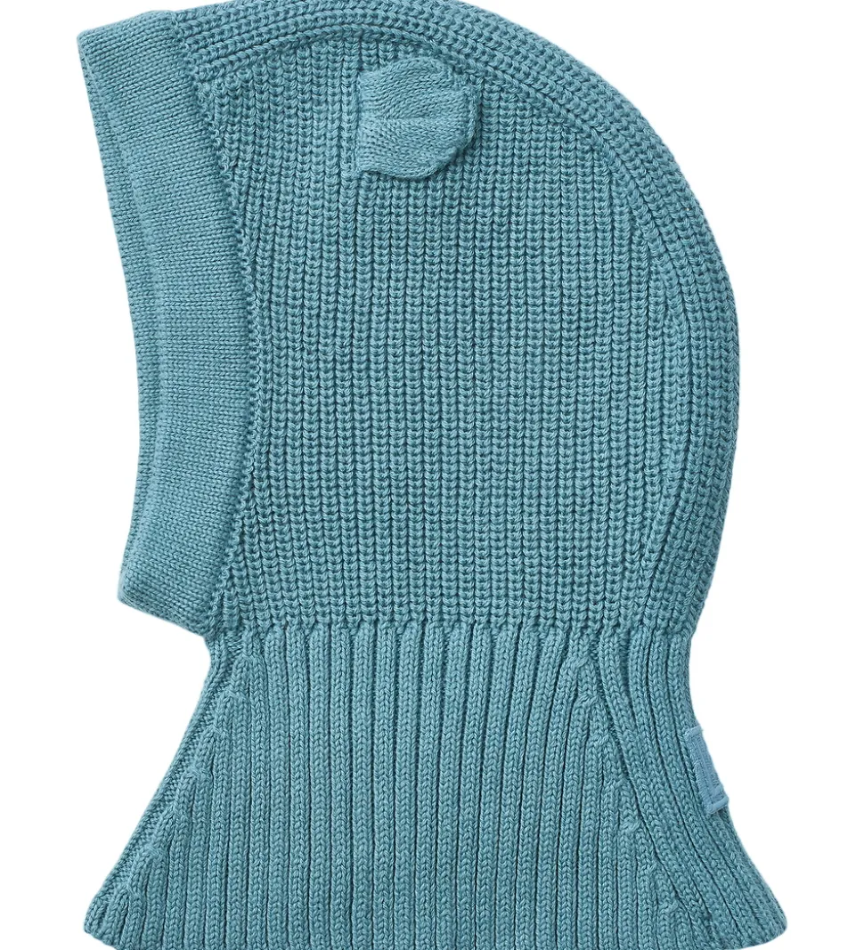 Flot Liewood elefanthue i ensfarvet blå med ribstruktur. Liewood elefanthuen har en rund hovedform og søde ører i toppen. Elefanthuen består af et enkelt lag i en strikket kvalitet.