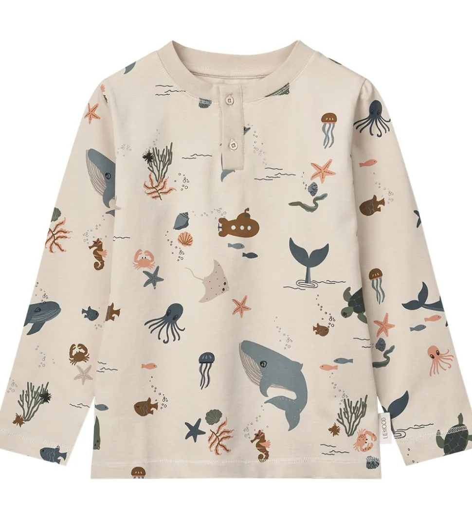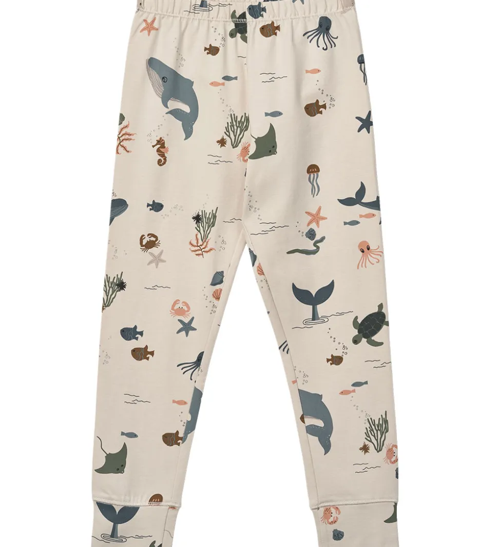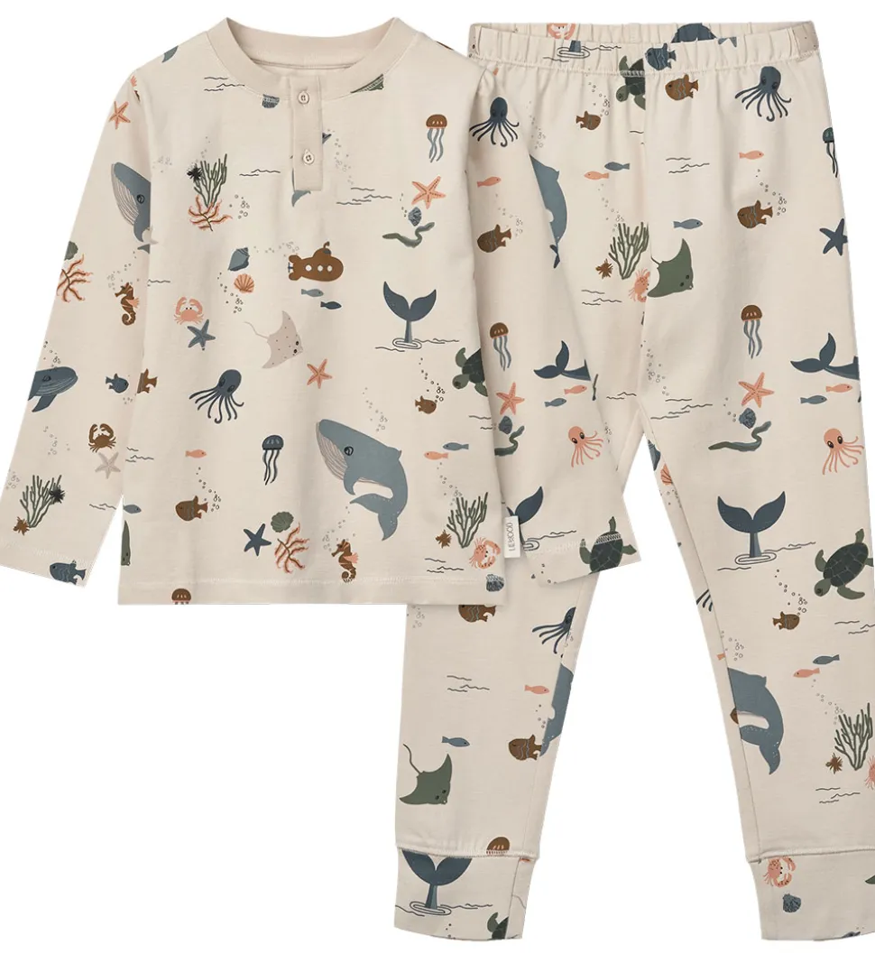 Hyggeligt Liewood nattøj i cremehvid med et fint, mulitfarvet undervandsprint.