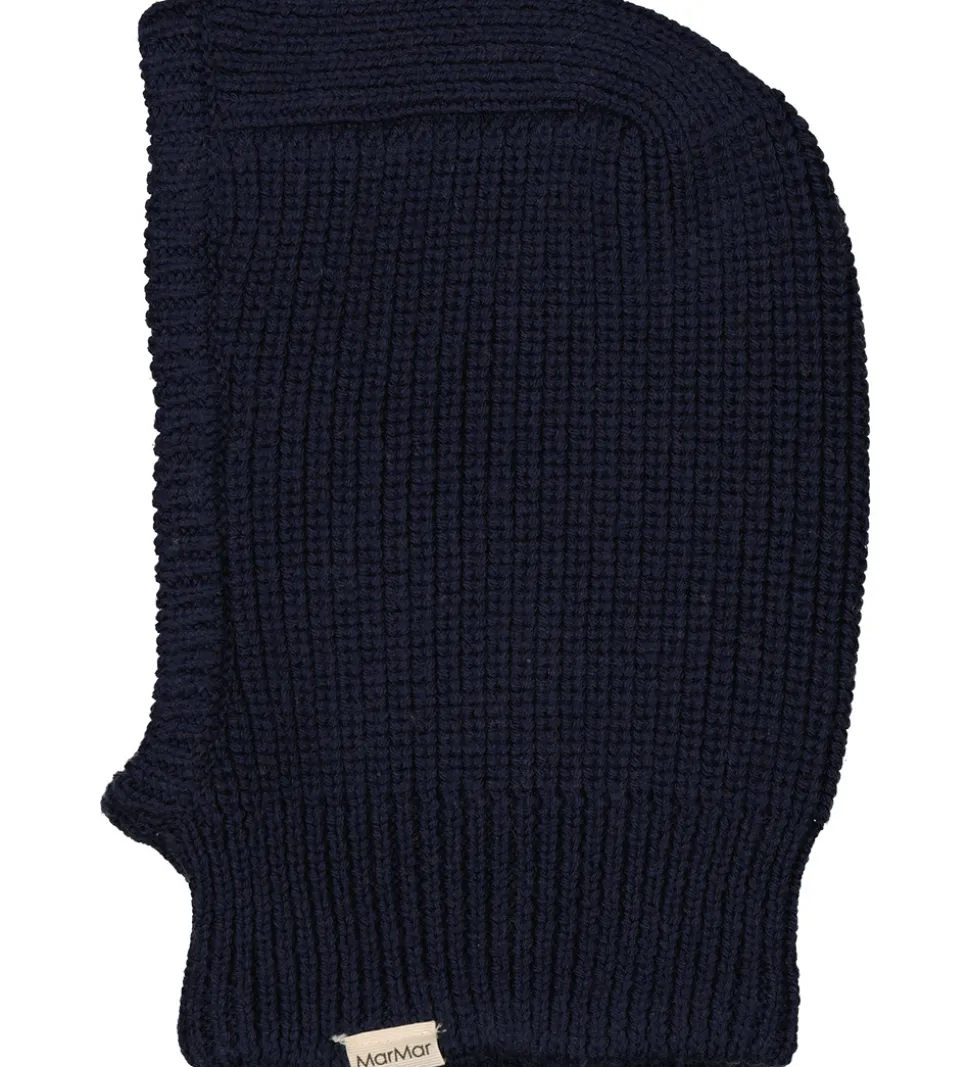 Stilren MarMar elefanthue i en dyb, mørkeblå farve med en ribstrikket struktur. MarMar elefanthuen består af to lag og har en rund hovedform, der sikrer en god pasform.
