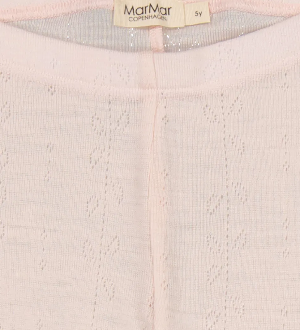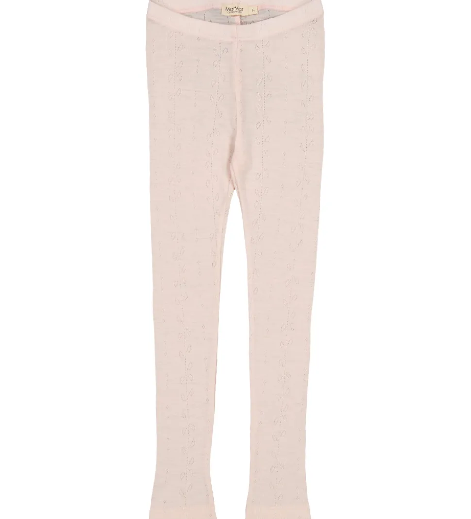 Elegante MarMar leggings i en lys rosa farve og lavet i en let uldkvalitet. MarMar leggings har et smukt hulmønster, som tilføjer et strejf af stil. Perfekt pasform sikrer komfort hele dagen.