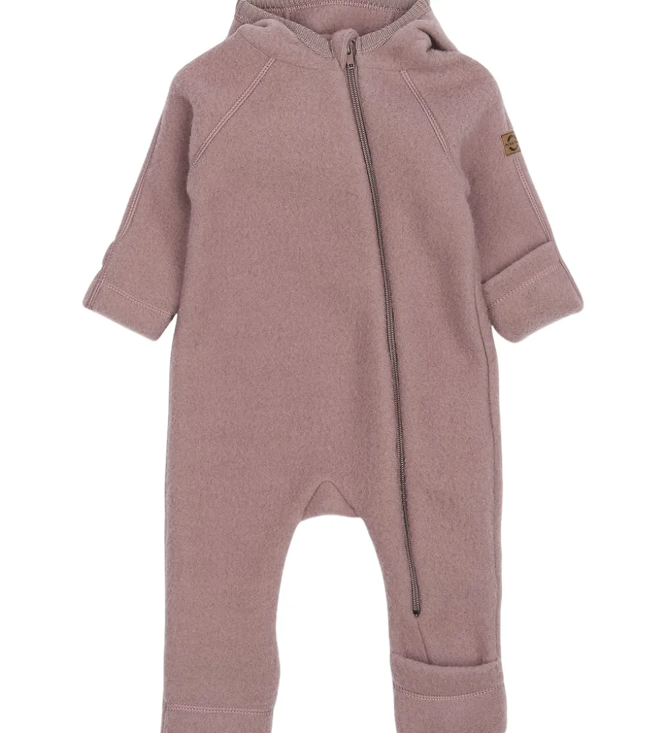Sød Mikk-Line køredragt af filtet merinould i støvet lilla.