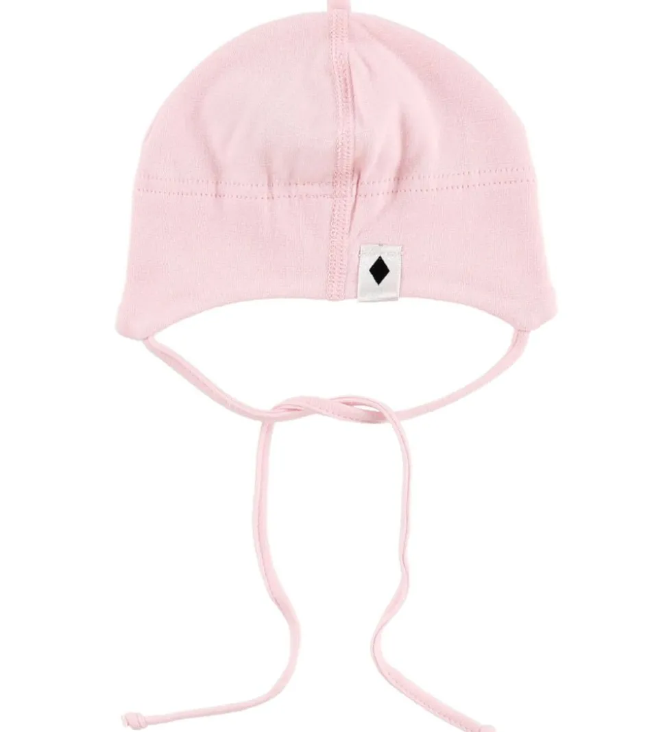 MP hjelmen har en stjernesyning i toppen, som giver huen en behagelig, rund form, der følger hovedets form. Hjelmen bindes under hagen med bløde, praktiske snore. Hjelmen er lavet i en skøn bomuldskvalitet, der føles blød mod huden.