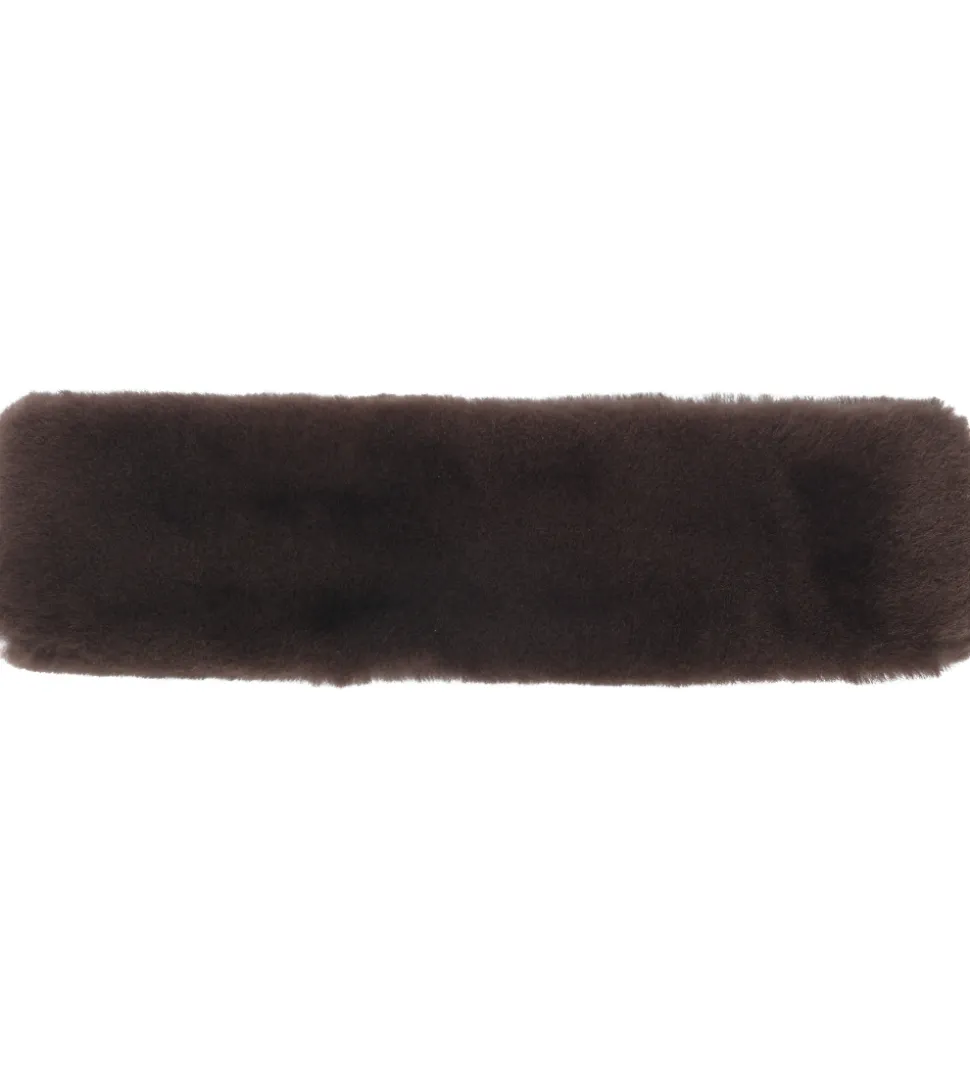 Elegant pandebånd fra Rosemunde i mørkebrunt fåreskind. Pandebåndet har en rund facon og varmer ørerne i de kolde måneder.