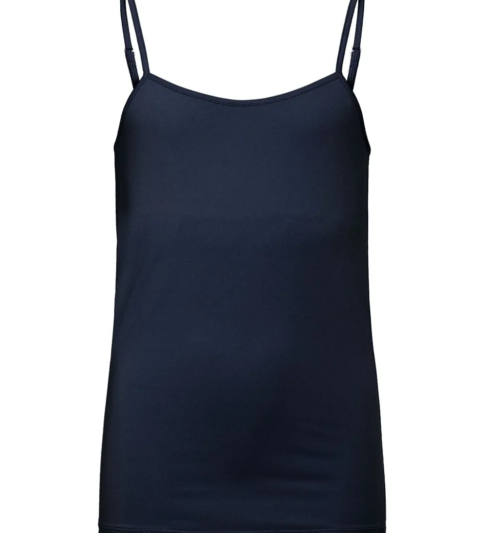 Praktisk Rosemunde top med smalle, justerbare stropper i en dyb blå farve. Toppen har et enkelt og klassisk design, perfekt til en afslappet påklædning. Rosemunde sikrer komfort hele dagen.