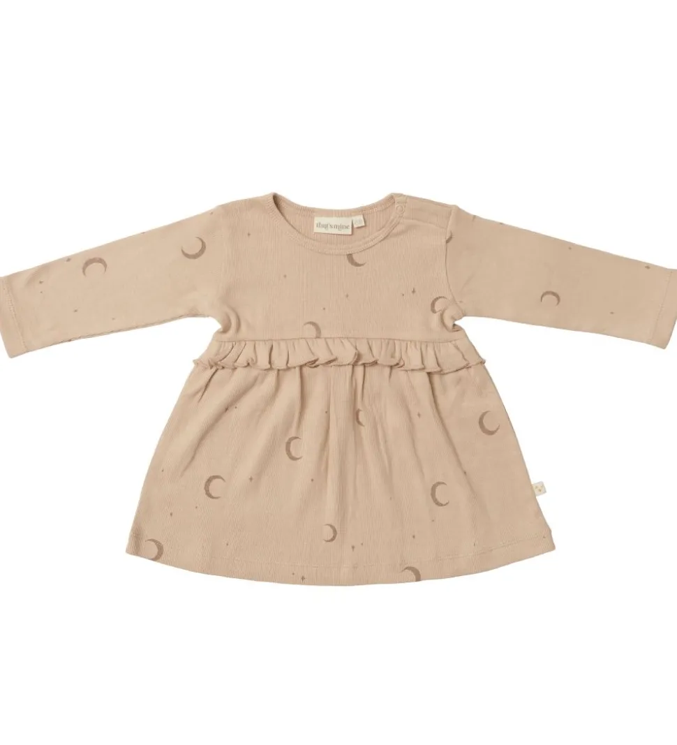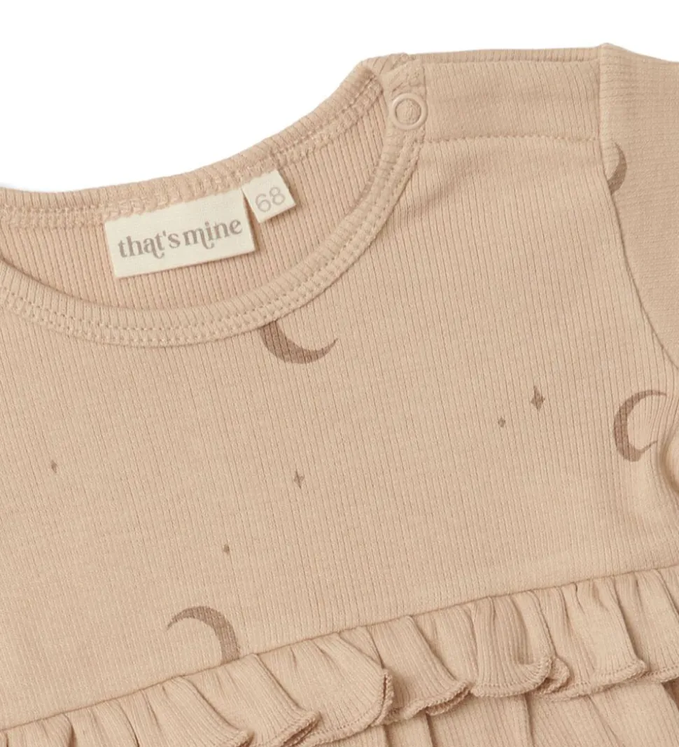 Sød That’s Mine tunika i beige rib med et alloverprint af halvmåner i en mørkere nuance.