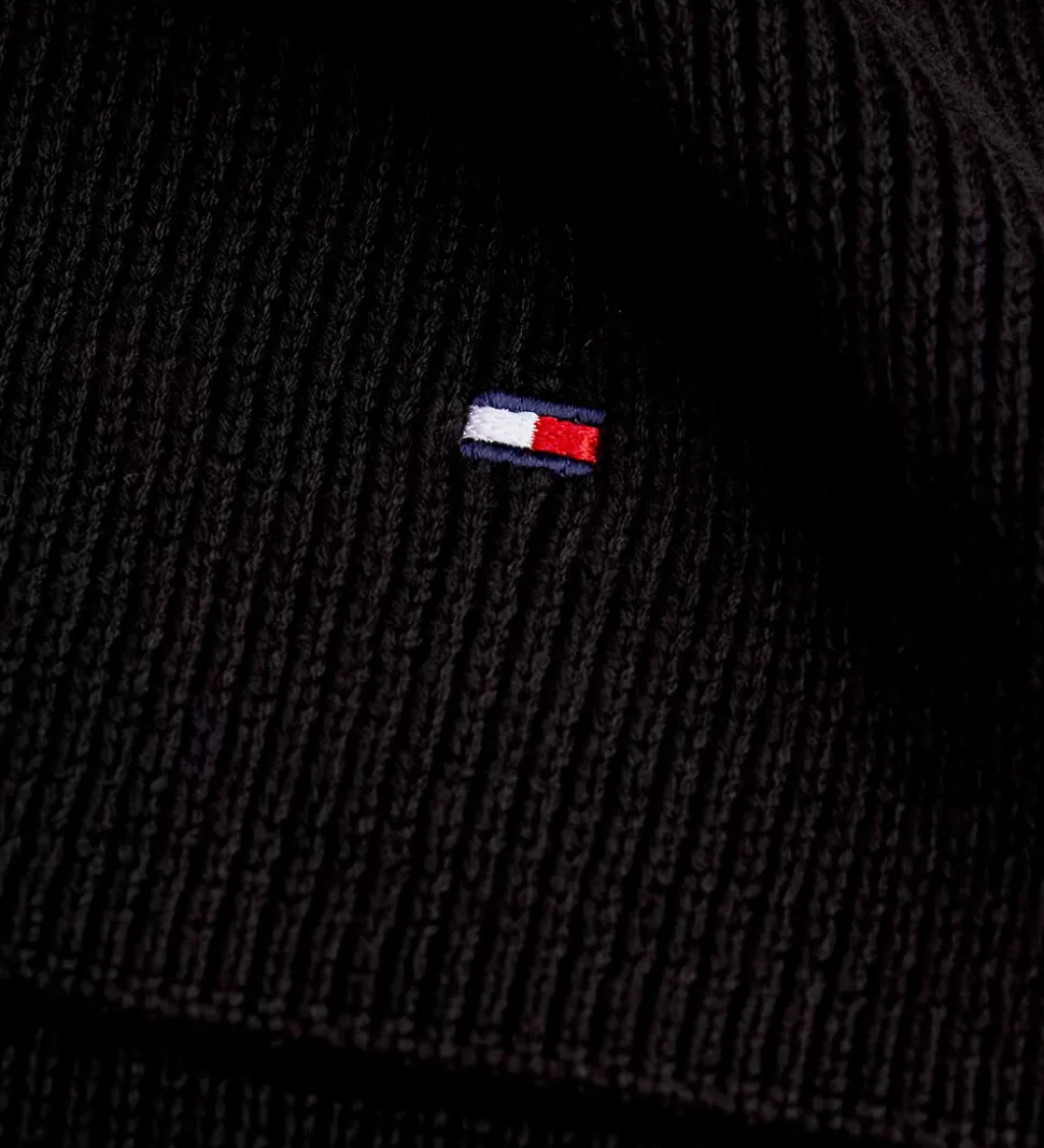 Elegant Tommy Hilfiger tørklæde i klassisk sort. Tørklædet har et diskret logoprint i den ene ende, der tilføjer et stilfuldt touch. Perfekt til kolde dage.